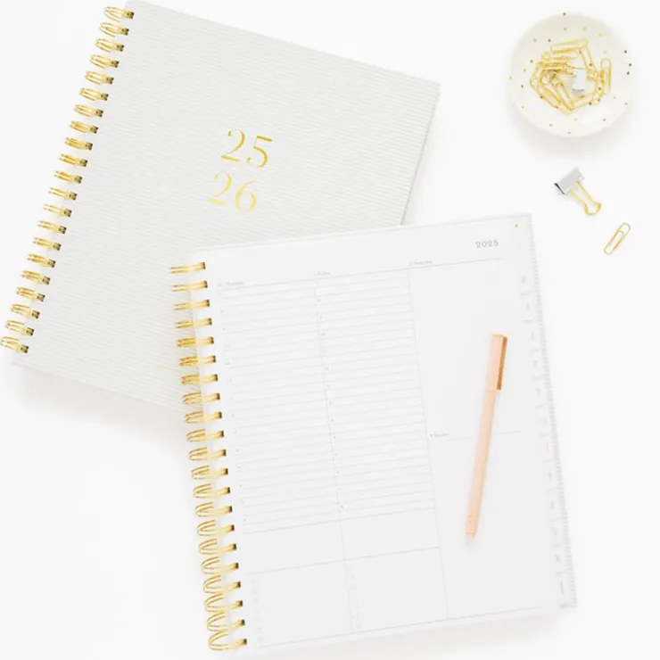 The Large Weekly Spiral Academic Planner lets you manage each hour of your day with extra-large pages, a convenient weekly layout, and plenty of space for you and your family’s activities. All bound in a large spiral format with a hard cover that leaves room for…everything. Designed for your school calendar year from August 2025 to July 2026.