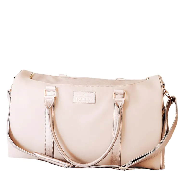 Travel in Style! The most glam duffle you have ever seen. A beautiful nude paired with the classic Hollis rose gold leop…
