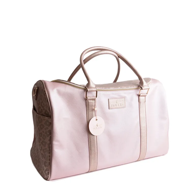 Travel in Style! The most glam duffle you have ever seen. A beautiful nude paired with the classic Hollis rose gold leopard. The end result is AMAZING!