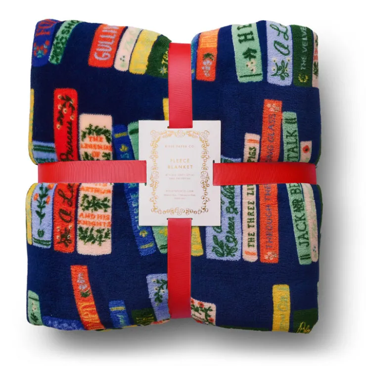 Curl up with a good book and this bookshelf fleece blanket, featuring a line up of our favorite classic titles. Made of plush fleece, the blanket comes packaged with a ribbon so it’s ready to gift.
