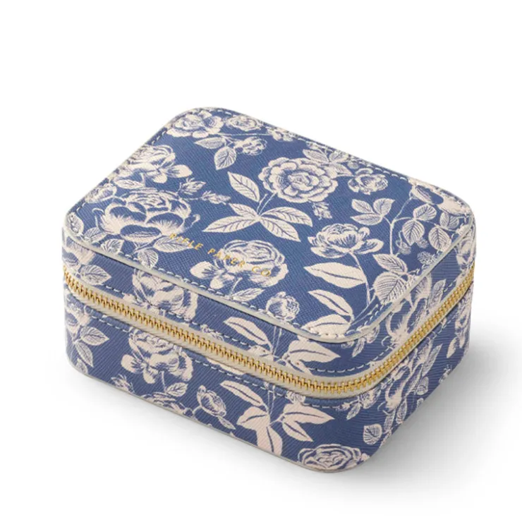 Inside pocket and compartments for rings and other small jewelryGold foil stamped logo and gold logo zipper pullTextured…