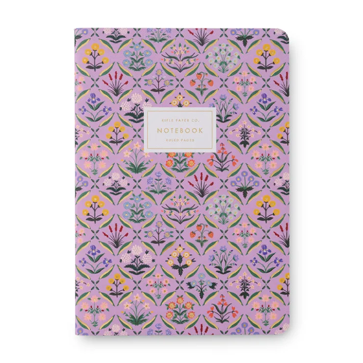 Good things come in threes, and Rifle Paper’s Stitched Notebook Set is no exception. Each bundle features three notebooks with full-color covers, stitched binding, gold foil accents, and 64 ruled pages.