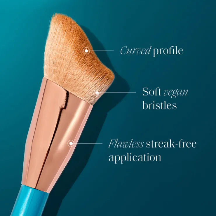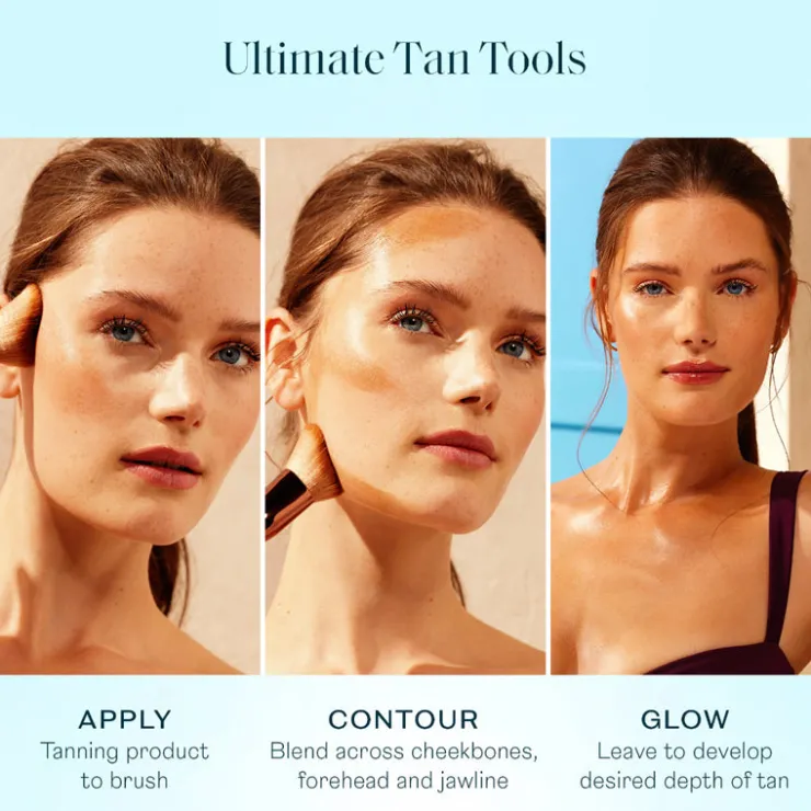 THE ULTIMATE SELF TAN TOOL for full face coverage or more precise tantouring. Soft vegan bristles effortlessly blend for flawless, streak-free application. The curved bristle profile guides tan across the natural contours of the face for a defined sun-kissed glow. Pairs perfectly with your favorite St.Tropez facial tanner or mousse.